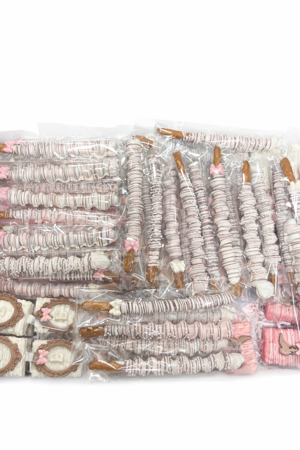 At The Sweets Kave, we proudly present our latest project, Boots & Bows Baby Shower 26, featuring custom chocolate designs alongside an elegant assortment of caramel pretzel rods, classic pretzel rods, and rice krispie treats, crafted to celebrate a sweet baby girl on the way. True to our commitment to "Making Life Sweeter One Bite at a Time," this curated selection showcases our dedication to creating memorable, personalized desserts for every special occasion.